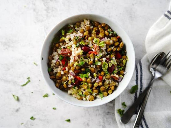 - Die Linsen nach Packungsanleitung in Salzwasser kochen, abgießen und auskühlen lassen.